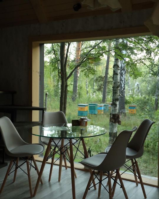 Домики окутаны смешанным лесом и тремя озерцами с родниковой водой. Из окна вы увидите пасеку и сможете попробовать самый вкусный домашний мед.