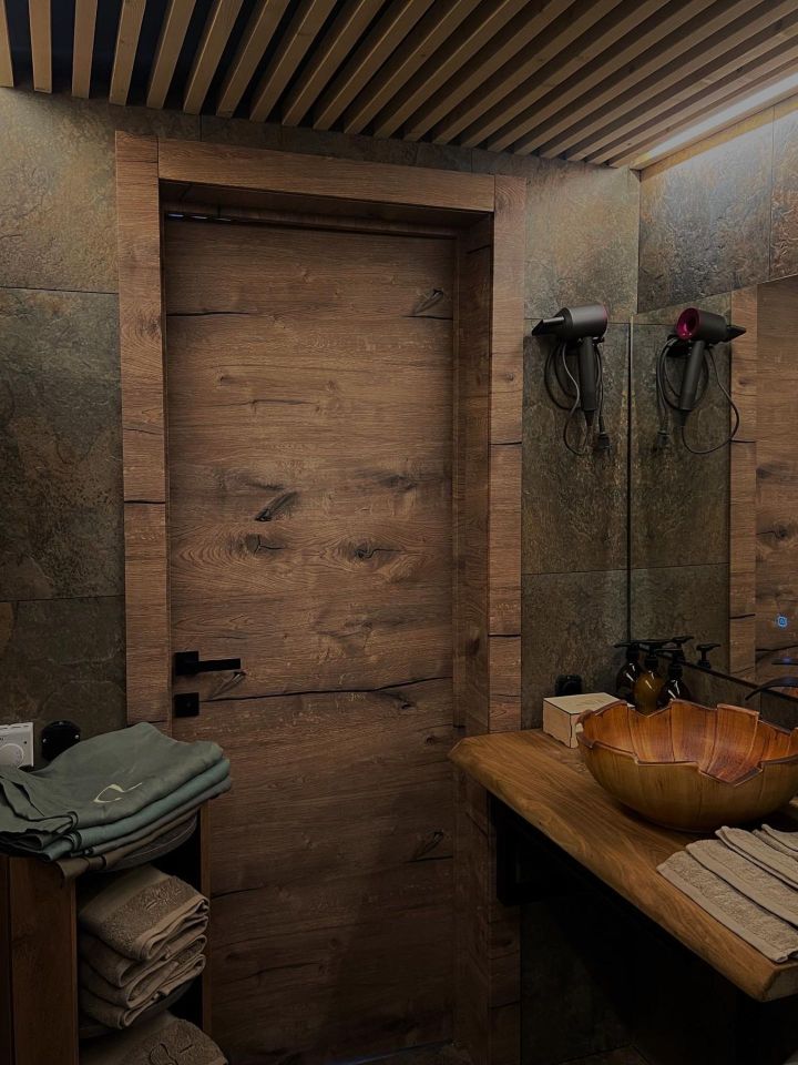 Санузел и душевая оснащены нужной бытовой химией и косметическими средствами (шампунь, кондиционер, гель для душа), а также льняные халаты и тапочки.